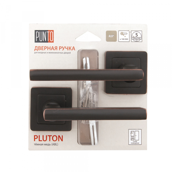 Дверные ручки Punto PLUTON серии QR из коллекции SIMPLE LIVING предназначены для установки в межкомнатные и внутренние входные двери. Гальваническое покрытие прошло тест на устойчивость к коррозии в соляном тумане и соответствует 1 классу ГОСТ. Ресурс работы дверных ручек более 150 000 циклов открывания/закрывания. Материал - алюминий. Комплектация: комплект крепежной фурнитуры, соединительный квадрат 8x105 мм.