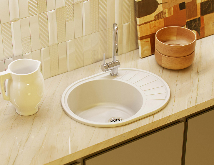 Классическая кухонная мойка из литого мрамора с крылом.