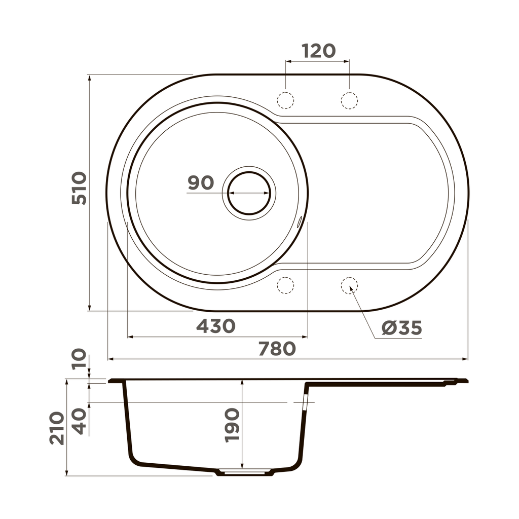 • Оригинальное дизайнерское решение кромки мойки позволяет использовать ее для размещения различных предметов;