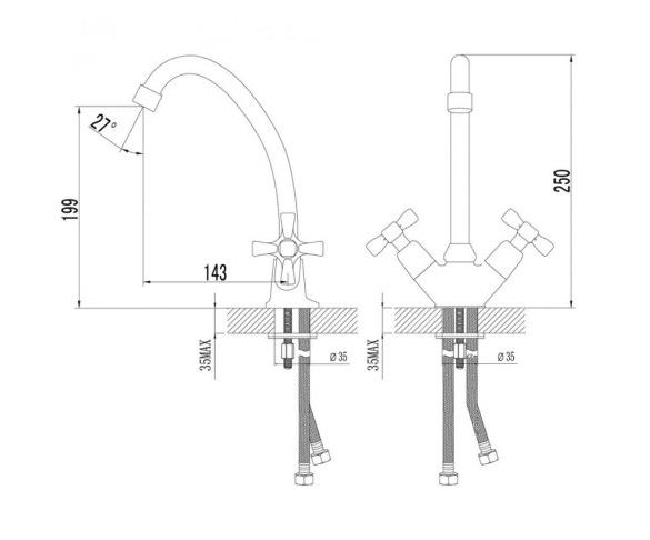 • Гибкая подводка 1/2” 35 см