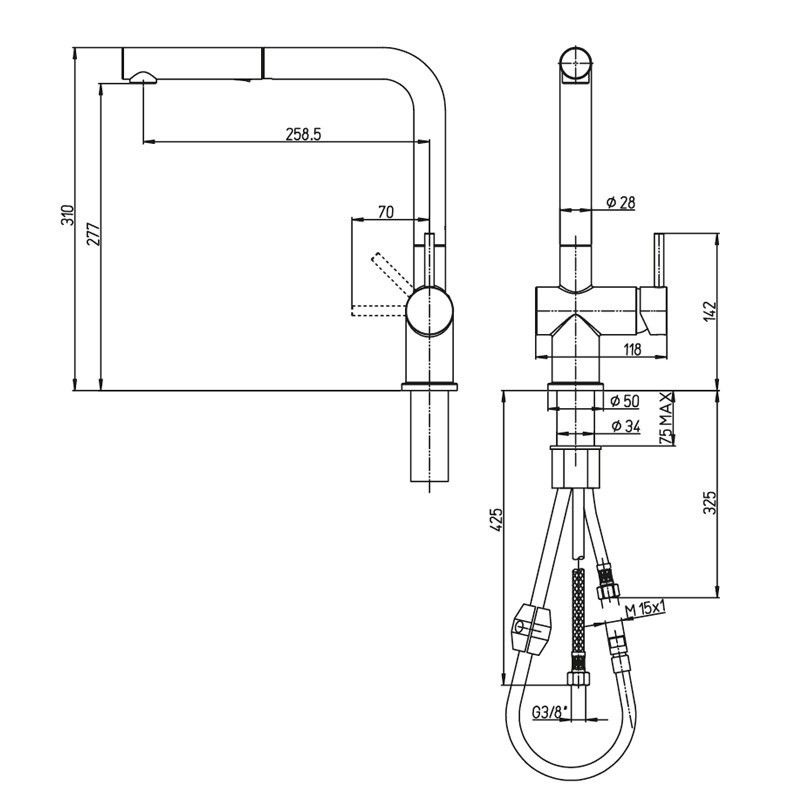 Конфигурация стандартный однорычажный / с вытяжным шлангом / кнопка струя/душ