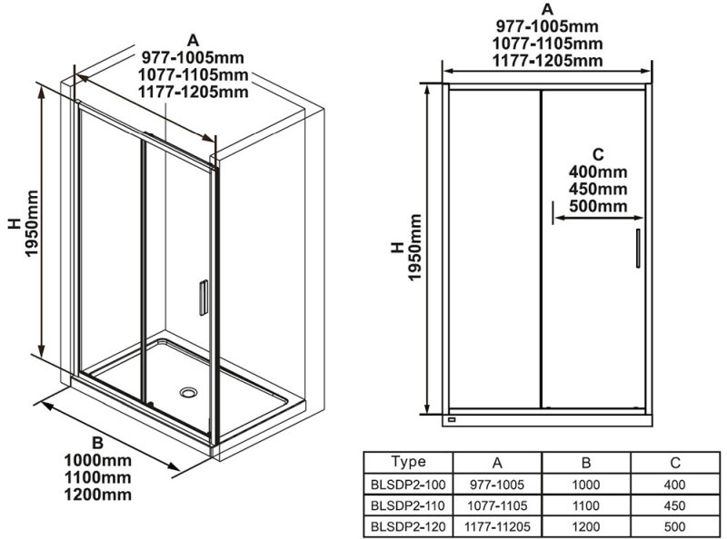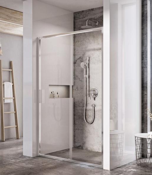 Изделие состоит из одной неподвижной части и одной подвижной - раздвижной двери. Устанавливается в облицованную кафелем нишу на поддоны RAVAK Perseus, Perseus Pro, Perseus Pro Flat, Perseus Pro Chrome, Gigant, Gigant Pro, Gigant Pro Flat, Gigant Pro Chrome или непосредственно на пол со встроенным душевым каналом.