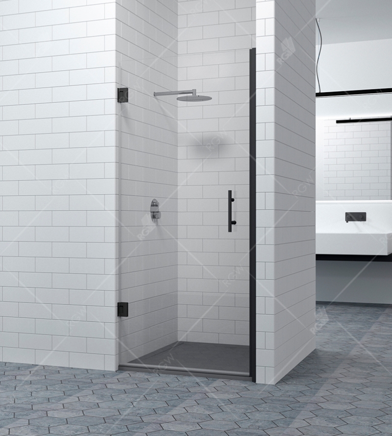 Душевая дверь распашная. В комплекте нижняя пороговая планка. Покрытие стекла анти капля (Easy Clean), цвет профиля чёрный. Толщина 8 мм.