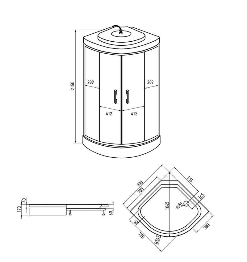 Душевая кабина ERLIT 90*90 ER3509P-C4-RUS тонированная, низкий поддон фото 2