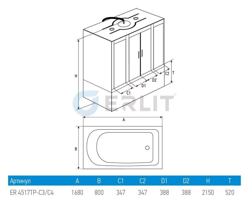 Душевая кабина ERLIT170*80 ER4517TP-C4-RUS