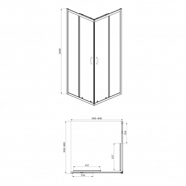 Ширина кабины, поддона, мм 900