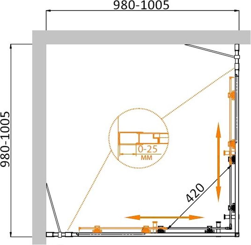 Регулировка ширины: предусмотрена за счет боковых профилей