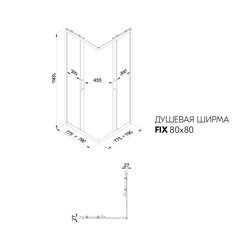 Размер кабины, поддона 80*80