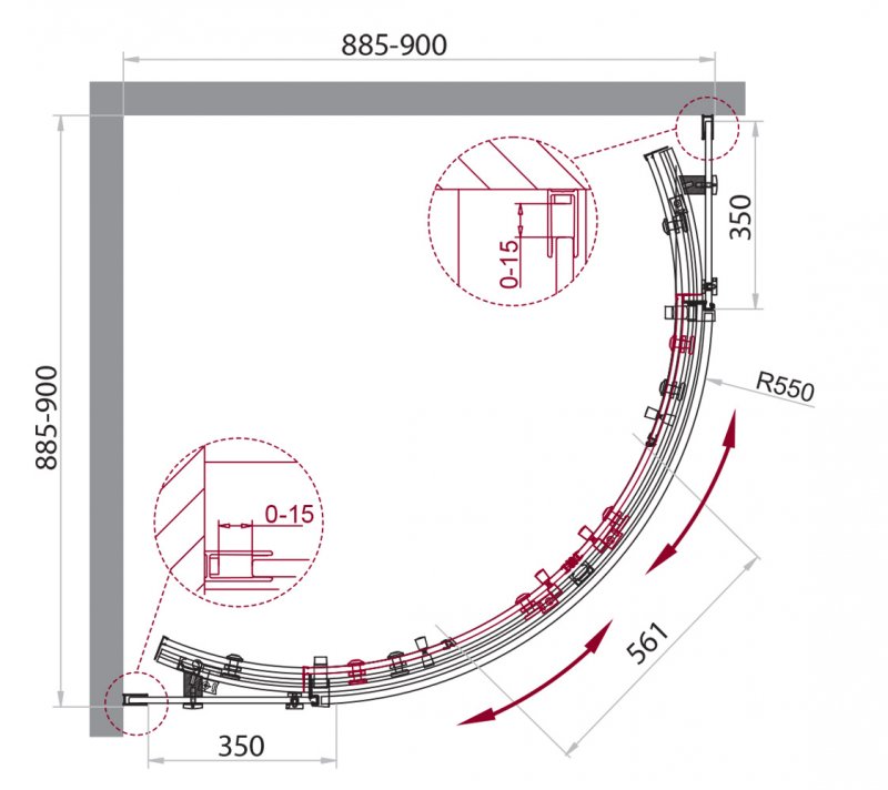 Регулировка ширины: предусмотрена за счет боковых профилей