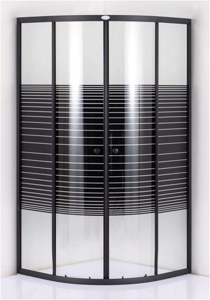 стекло 4 мм прозрачное с горизонтальными черными полосами, черный профиль