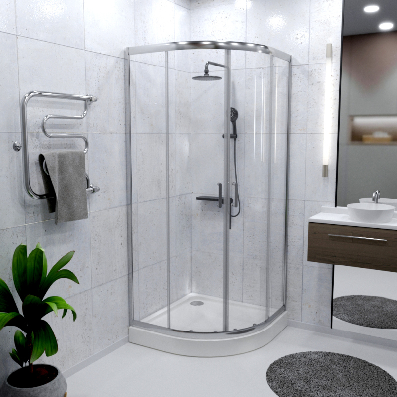 Для изготовления шторок применяется ударопрочное сертифицированное стекло толщиной 5 мм, что гарантирует безопасность при эксплуатации. Инновационное покрытие Radomir® ClearGlass предотвращает разводы и подтеки на стекле, за счет чего уход за изделием становится легче.