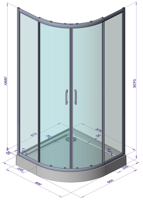 Ширина кабины, поддона, мм 900