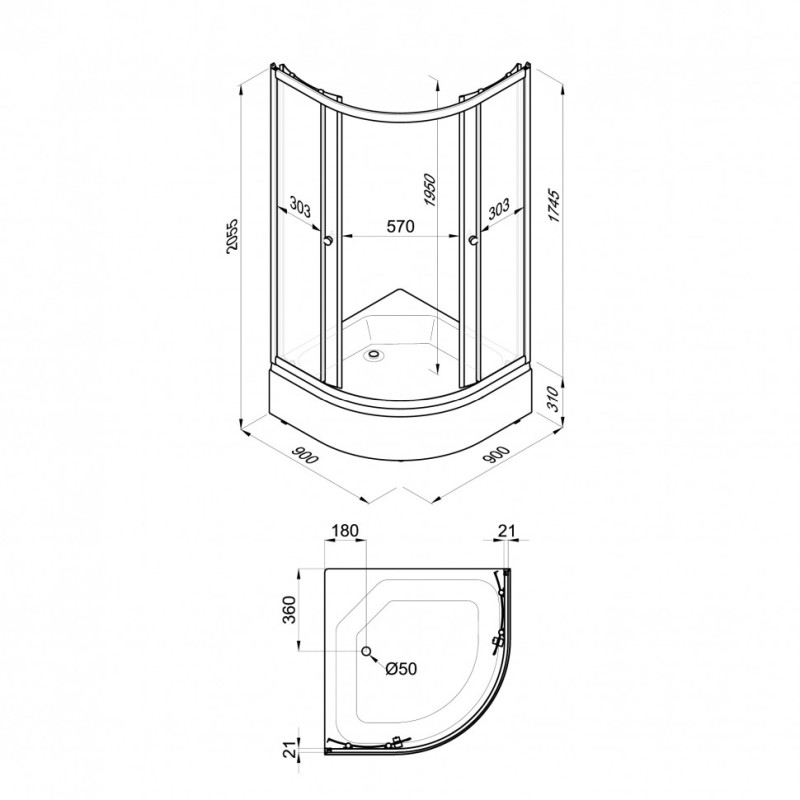 Душевое ограждение Triton Грей В 90*90 средний поддон