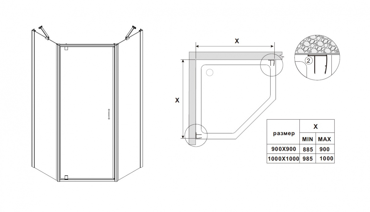 Размер кабины, поддона 90*90