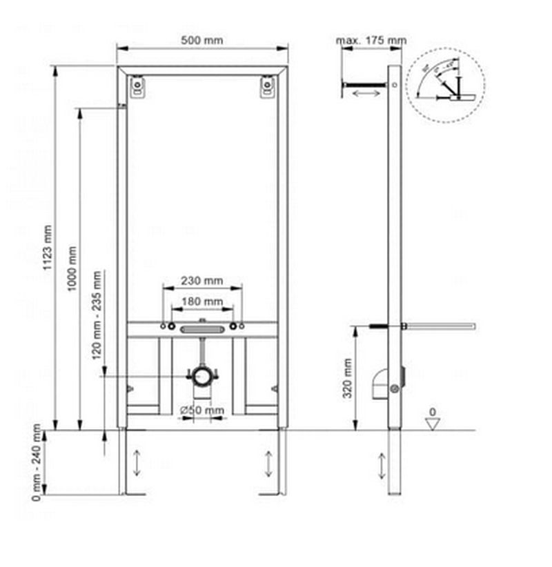 Ширина инсталляции от 42 до 50 см