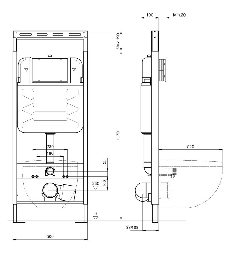 Ширина инсталляции от 42 до 50 см