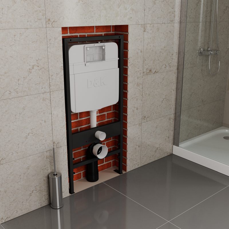 Инсталляция D&K - это система креплений и приспособлений, позволяющих произвести установку подвесного унитаза. Крепится она к стене или за специальным декоративным коробом. На раму устанавливается чаша подвесного унитаза, сливной бачок, различные приспособления и механизмы, вентили и краны, предохранительные клапаны. Также система инсталляции позволяет подключать трубы для подачи и отведения воды. Особенности системы инсталляции D&K: