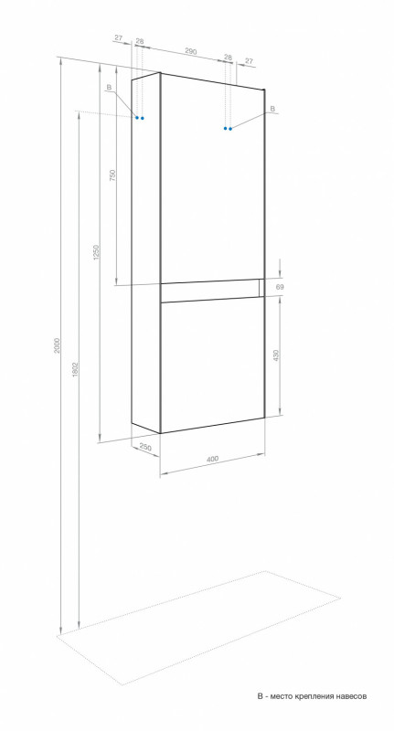 Пенал подвесной Aquaton Форест 40 Дуб Рошелье/Сумеречный голубой фото 4