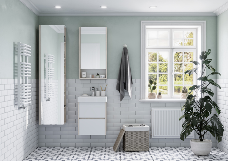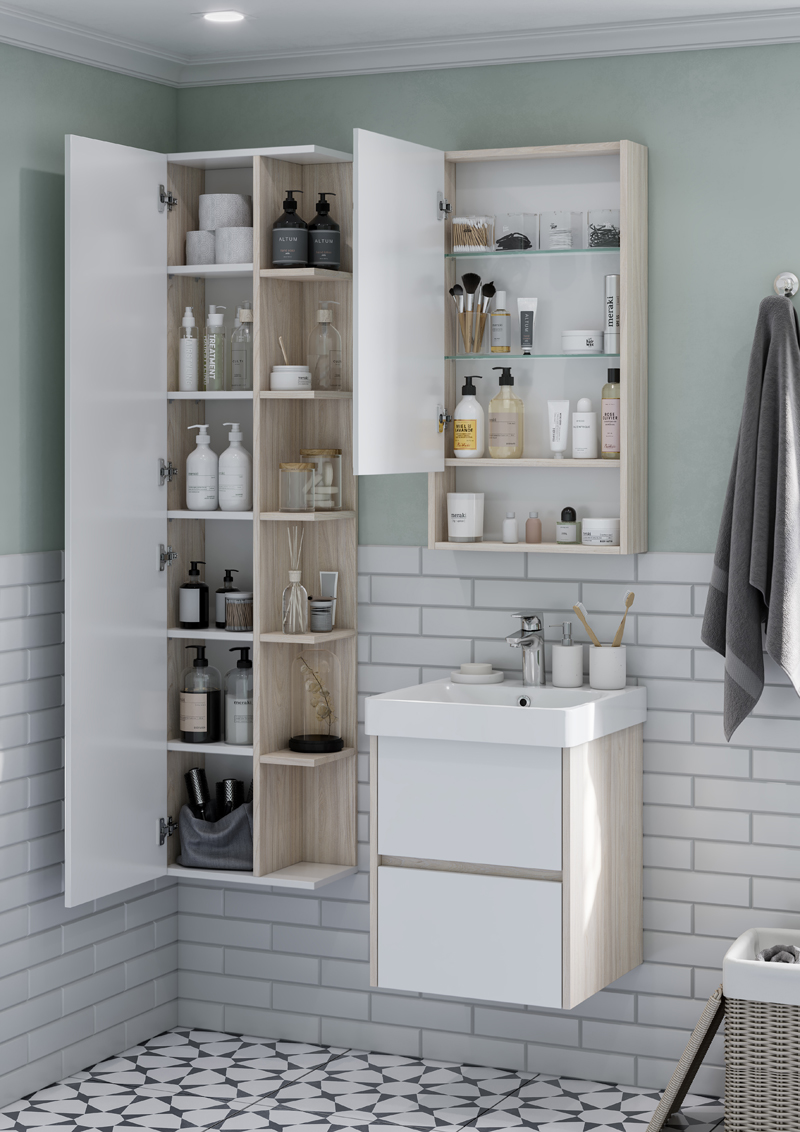Шкаф-колонна Aquaton Сканди 40*23*160 Белый Глянцевый/Дуб Верона