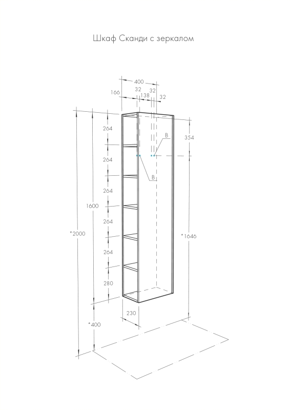 Высота мебели, мм 1600