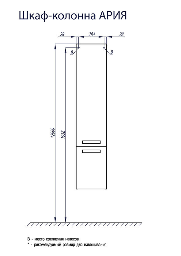 Подвесной шкаф-колонна Ария выполнен в современном лаконичном стиле из
