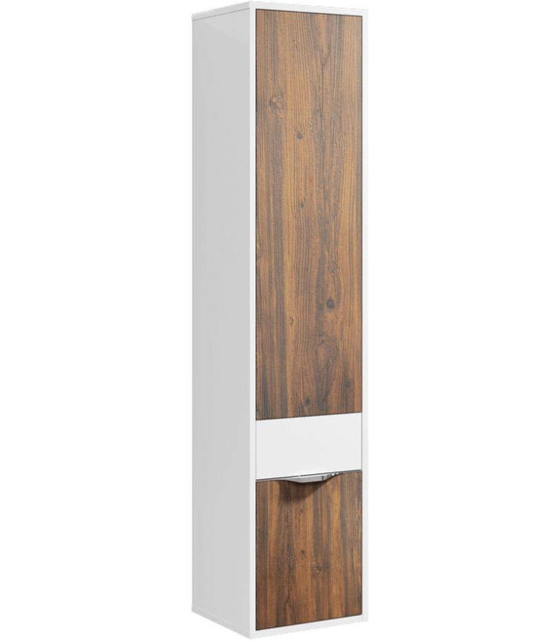 Подвесной пенал с одним маленьким ящиком на системе push-to-open, нижняя с удобной хромированной ручкой.Петли установлены слева. Цвет крафт тёмный.