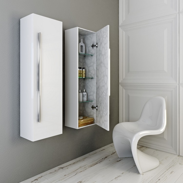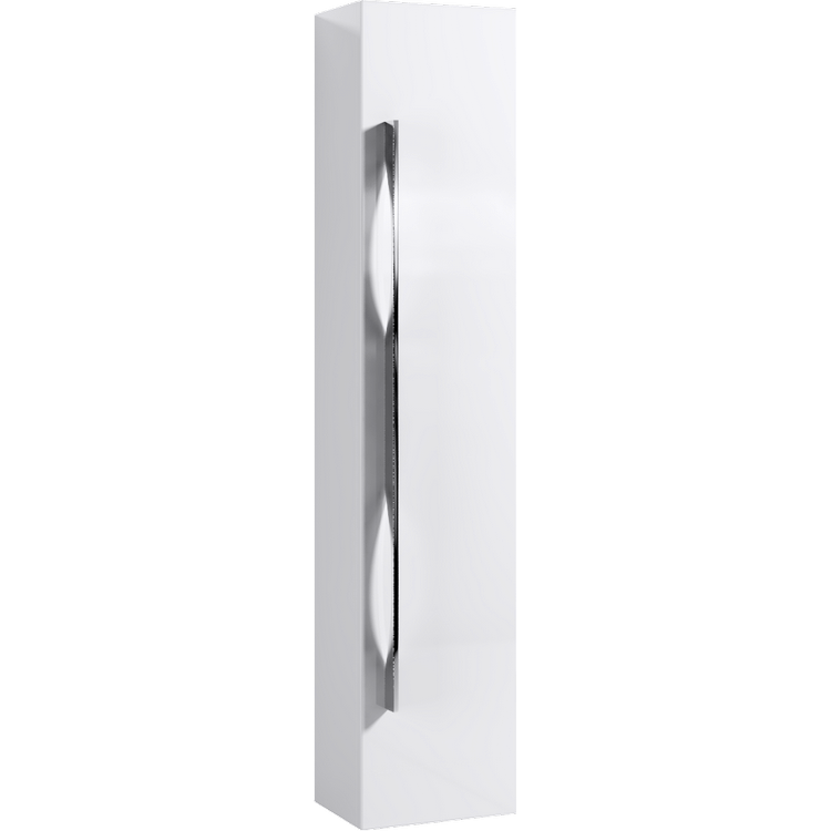 Подвесной универсальный левый/правый пенал с одной дверью на мебельных петлях с доводчиками в белом глянцевом цвете.
