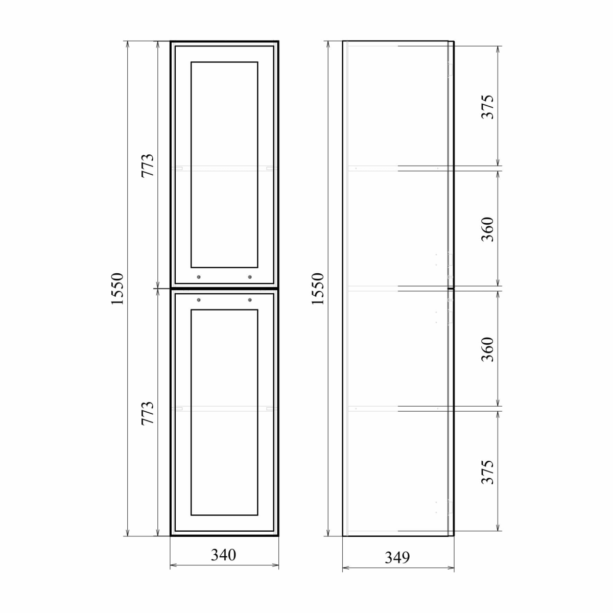 Ширина мебели, мм 340