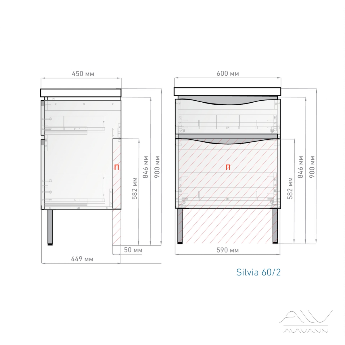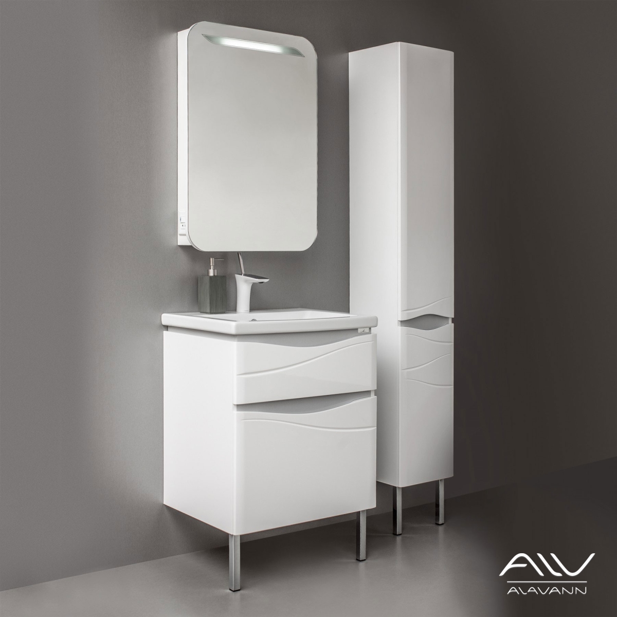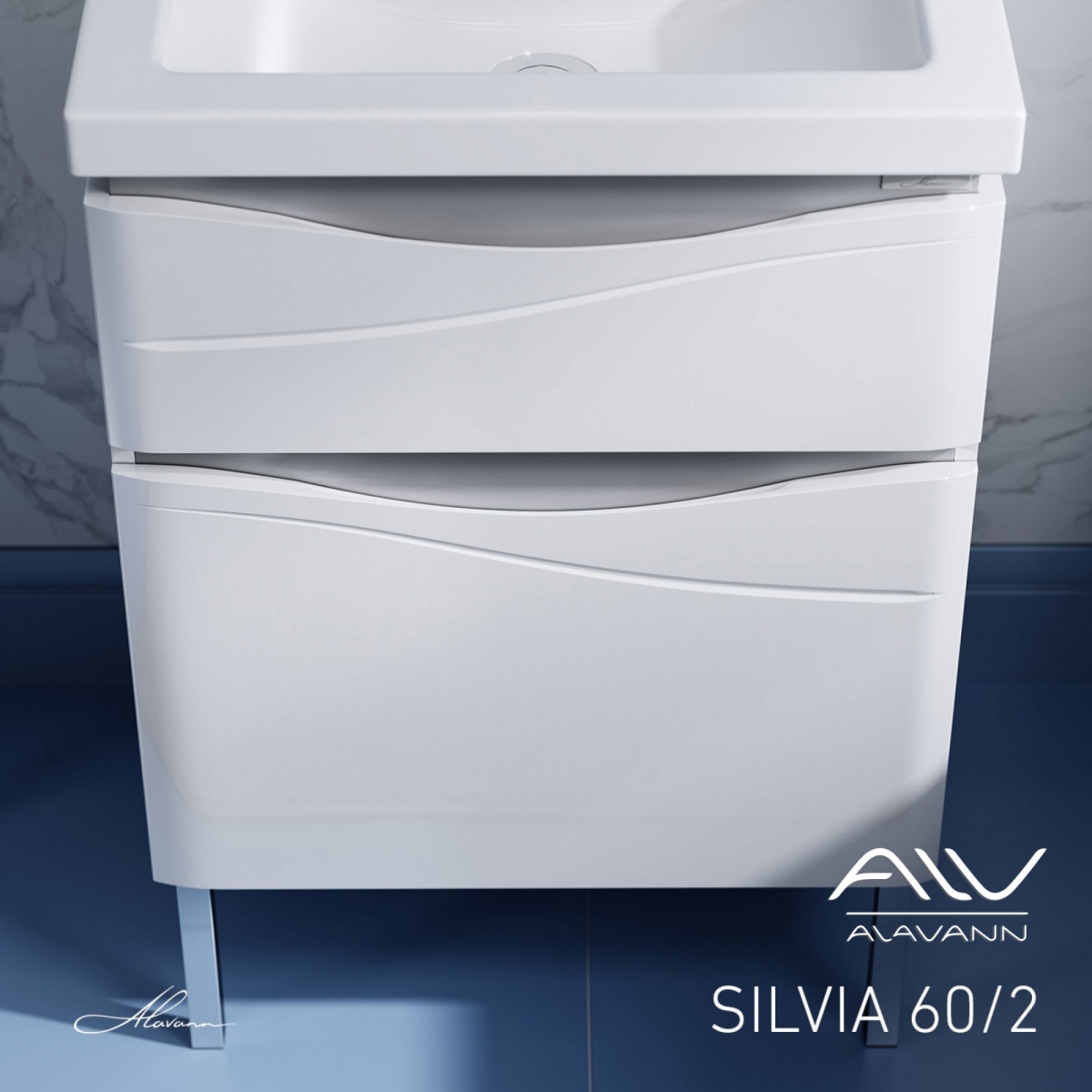 Тумба с раковиной Alavann Silvia 60, 70 напольная белая/серые вставки