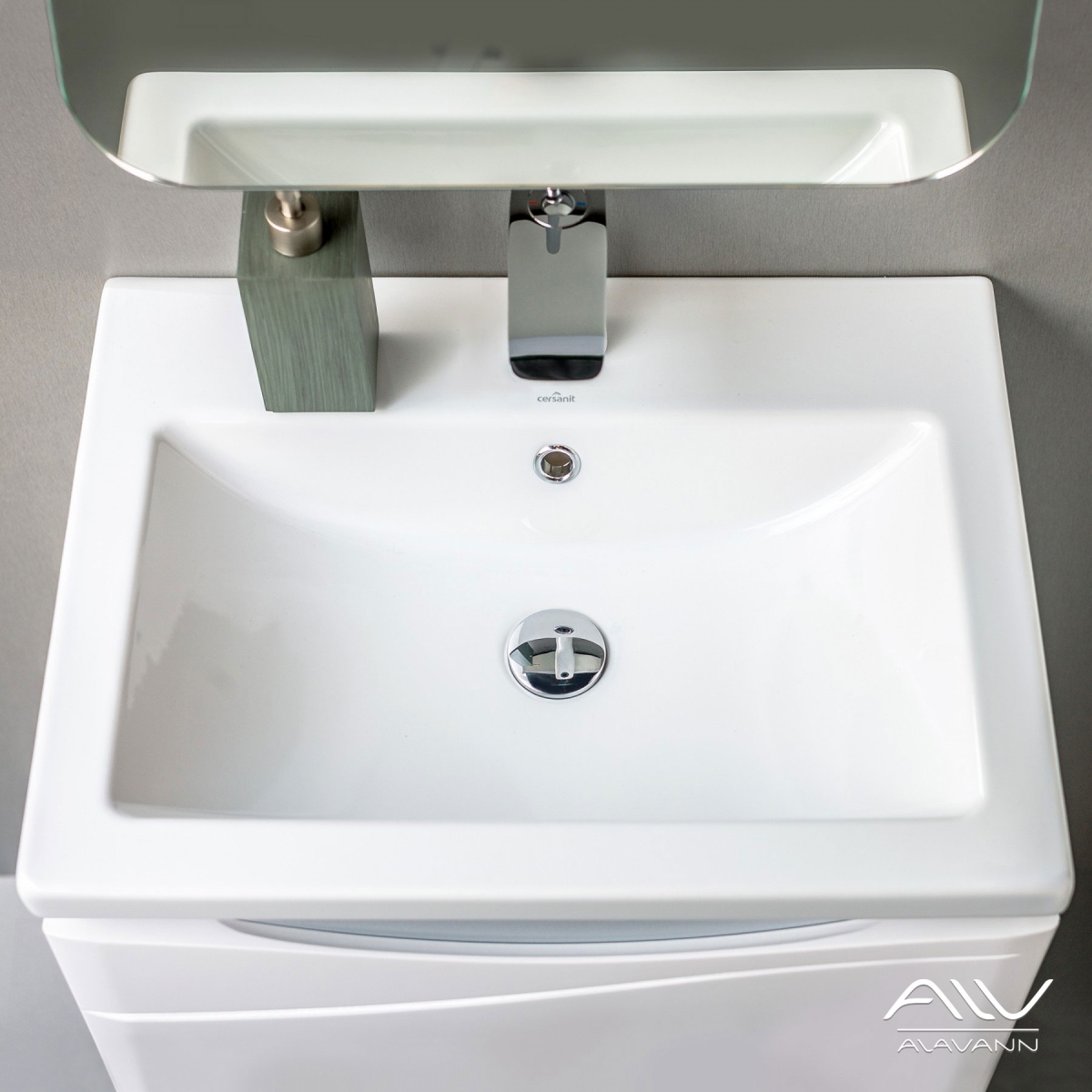 Тумба с раковиной Silvia - это функциональный авторский дизайн и высококачественные материалы, которые гарантируют максимально долгий срок эксплуатации изделия в условиях ванной комнаты (повышенная влажность, перепад температуры). Благодаря отсутствия ручек и фурнитуры, Silvia может комбинироваться с зеркальными шкафами и зеркалами из других коллекций Alavann . Комплектуется раковиной Cersanit Como.
