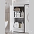 Фасады выкрашены белой глянцевой эмалью, которая защищает мебель от разбухания. Для открывания дверей тумб предусмотрен зацеп, интегрированный в фасад. Каждая тумба имеет 1 распашную дверь на петлях с доводчиком. Наполнение тумб - 1 съёмная полка с возможностью перестановки и 1 боковая полка жёсткой фиксации. Полки выполнены из ламинированной ДСП белого цвета.