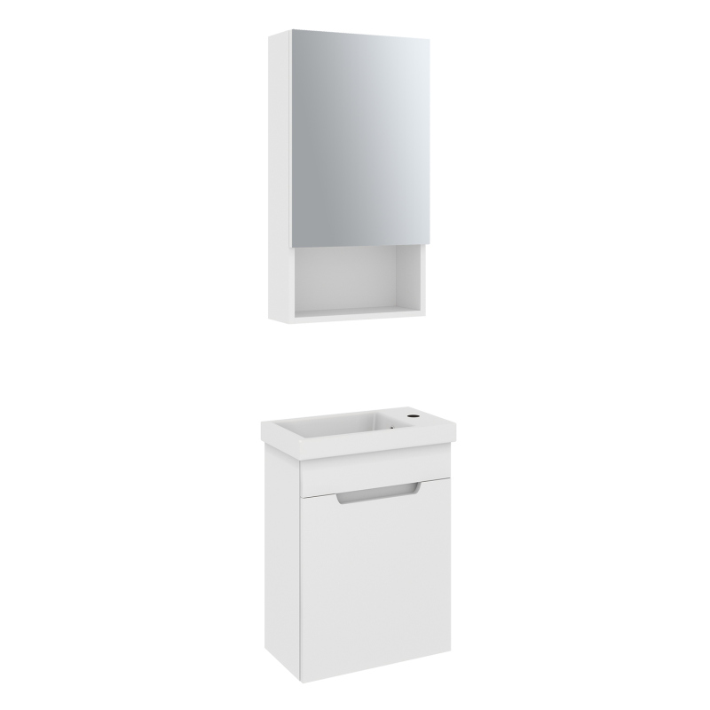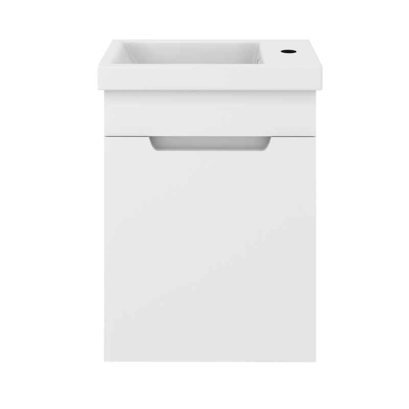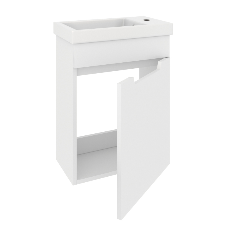 Подвесная тумба CITY — компактное и практичное решение для небольших ванных комнат, санузлов и гостевых пространств. Модель выполнена в современном минималистичном стиле и предназначена для установки с керамической раковиной Фостер. Тумба оснащена одной распашной дверцей в правом исполнении, дверца открывается вправо. Такое решение удобно для стандартных планировок и компактных помещений. Внутреннее пространство организовано с помощью полки, которая позволяет аккуратно разместить бытовую химию, средства гигиены и другие аксессуары для ванной комнаты. Напольная конструкция на устойчивых опорах обеспечивает надёжность установки и не требует крепления к стене.