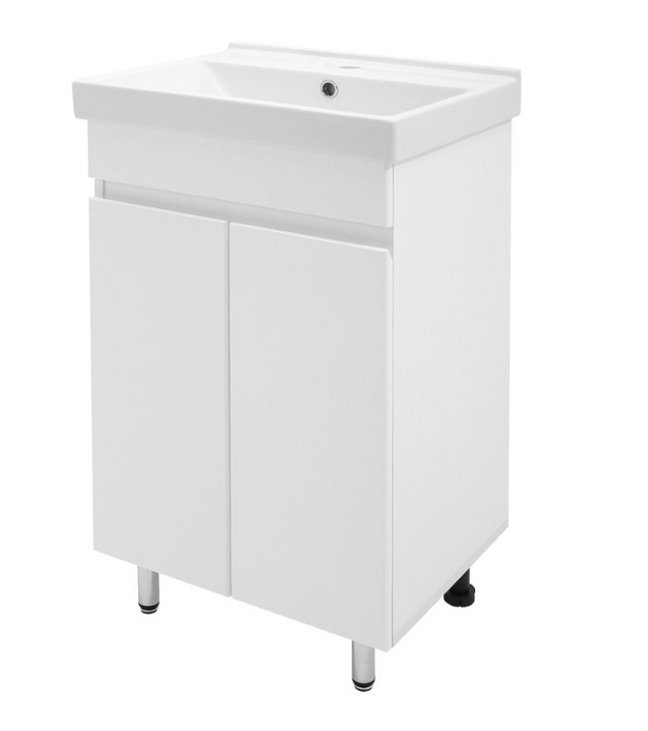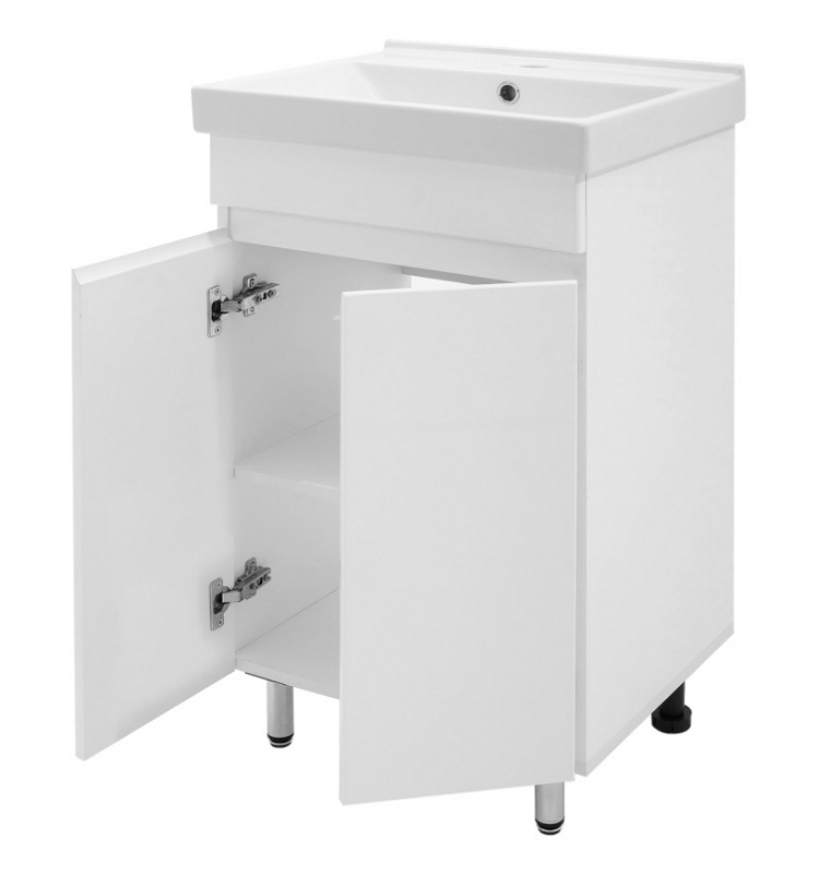 Комплект – тумба с раковиной станет идеальным решением для вашей ванной комнаты в современном стиле. Напольная тумба шириной 50 см. Корпус выполнен из влагостойкого ЛДСП, фасад из МДФ и покрыта глянцевой эмалью, что обеспечивает долговечность и защиту от влаги.
