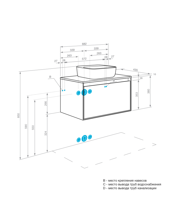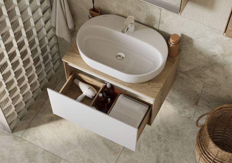 Тумба под раковину Aquaton Либерти 70, 90 Дуб Эльвезия/Белый глянец, столешница Дуб Эльвезия фото 6