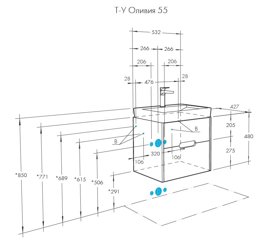 Тумба с раковиной Акватон Оливия 55, 70, 80, 90 Дуб Веллингтон фото 4