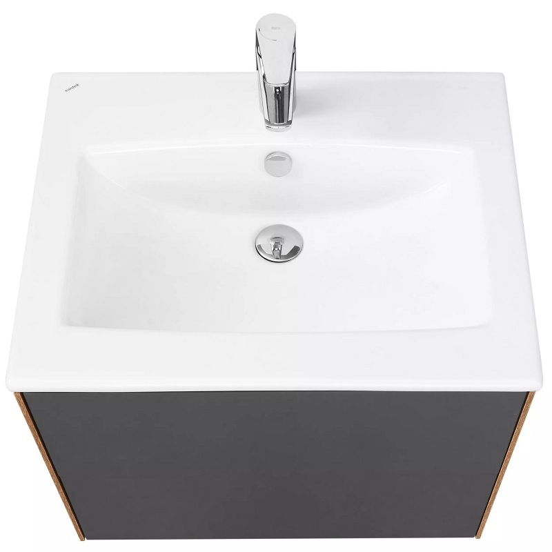 Тумба Сохо функционально состоит из двух вместительных ящиков, оснащенных системой push to open, обеспечивающей надежное, комфортное и бесшумное закрывание. Фасады изделия – МДФ в пленке графит с эффектом soft touch, корпус – ламинированная влагостойкая ДСП Дуб веллингтон. Верхний и нижний ящики оснащены системой организации пространства, которая позволяет содержать косметические средства в идеальном порядке. Дополняет тумбу стильная раковина Элина от бренда Santek с удобной чашей. Все внутренние детали тумбы выполнены в тон фасадов – цвета антрацит.