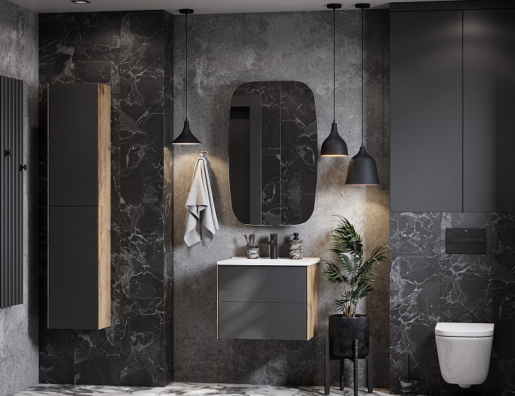 Тумба с раковиной Акватон Сохо 60, 75, 100 Графит Софт/Дуб Веллингтон