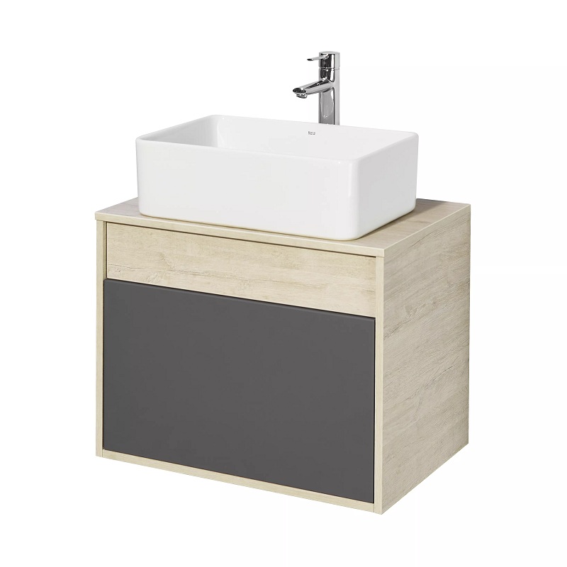 Модуль коллекции Лофт Урбан функционально состоит из двух ящиков полного выдвижения. Верхний ящик тумбы комплектуется внутренней организацией пространства: в нем очень удобно хранить небольшие аксессуары и принадлежности. Вместительный нижний высокий ящик подойдет для более крупных предметов. Функция полного выдвижения ящиков и система открывания push-to-open делают использование тумбы особенно комфортным. Подвесной модуль может комплектоваться различными по размеру и дизайну металлическими черными опорами, высокими и низкими, которые крепятся непосредственно под модуль, кроме того, доступен вариант установки модуля и без опор. Корпус тумбы выполнен из влагостойкой ламинированной ДСП в цвете дуб орегон с текстурой натурального дерева, выгодно подчеркнутым фасадами из МДФ в пленке антрацит с эффектом soft touch.