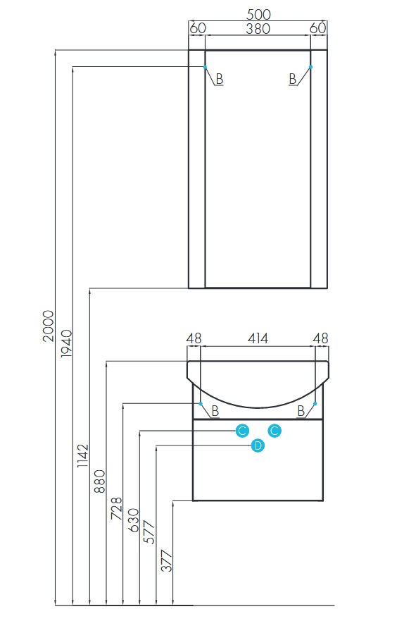 Ширина мебели, мм 500