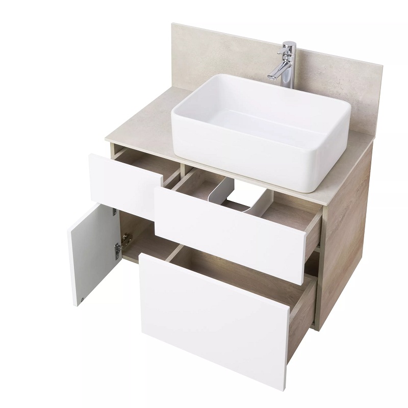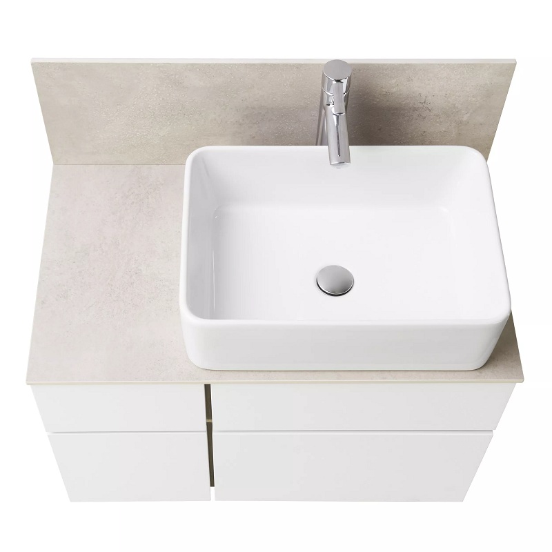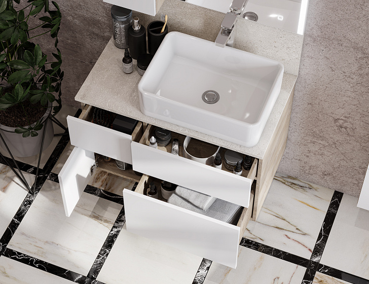 Тумба со столешницей керамогранит с раковиной Мила Aquaton Мишель 80, 100 Белый Софт/Дуб Эндгрейн подвесная