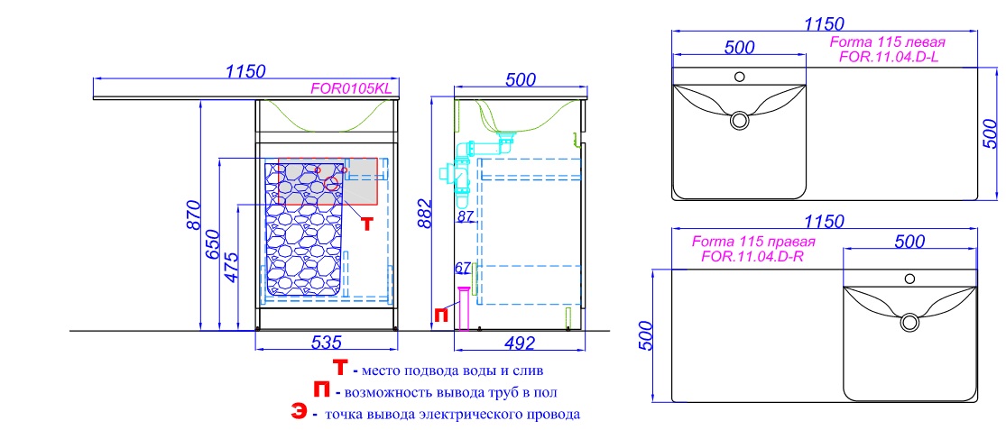 мрамора доступны с левым или правый расположением чаши. Ширина
