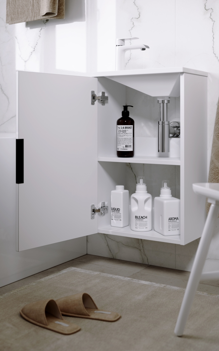 Тумбы оснащены итальянскими навесами Camar, которые выдерживают нагрузку до 200 кг Австрийский производитель Blum даёт вечную гарантию на фурнитуру, установленную в мебели AQWELLA.