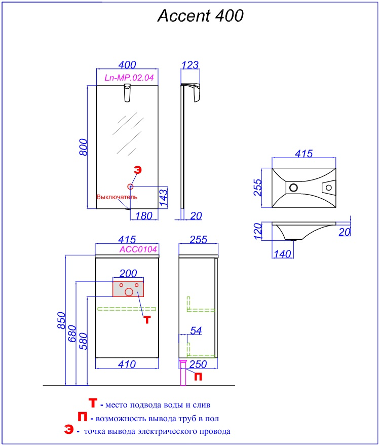 Ширина мебели, мм 400
