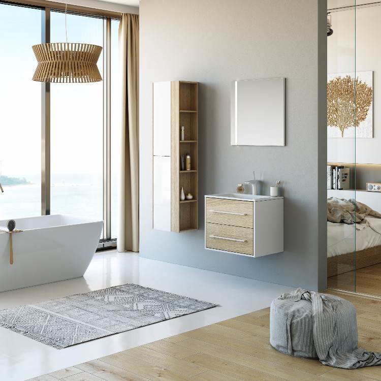 Соединение простоты форм и теплого цвета дерева это коллекция Miami. Широкий ассортиментный ряд позволит подобрать мебель в ванную любого размера. Умывальники применяются из литьевого мрамора в размерах 60, 75, 90 и 100 см. Корпус тумб из ЛДСП, окрашенного белой глянцевой эмалью. При изготовлении фасадов применяется технология нанесения кромки на ЛДСП с помощью лазера, что обеспечивает высокую влагостойкость мебели. Направляющие ящиков австрийского производителя Blum гарантируют плавное и мягкое закрывание на весь срок службы мебели.