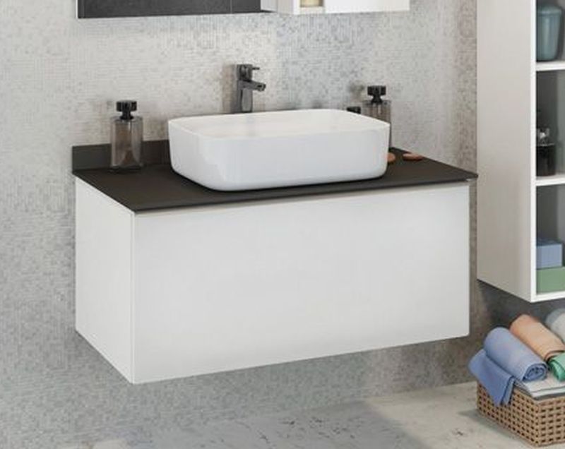 Тумба-умывальник "Милан-90" белый глянец с антрацитовой столешницей, с раковиной COMFORTY T-Y9378