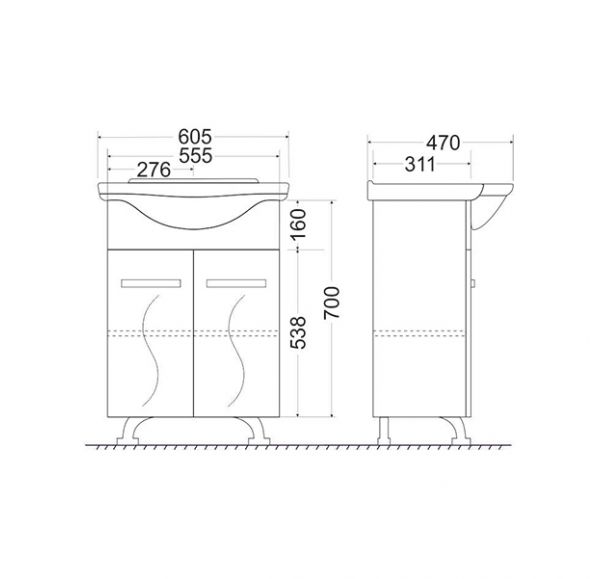 Тумба с раковиной Mirsant Сандра 60, 100/3 напольная с дв.