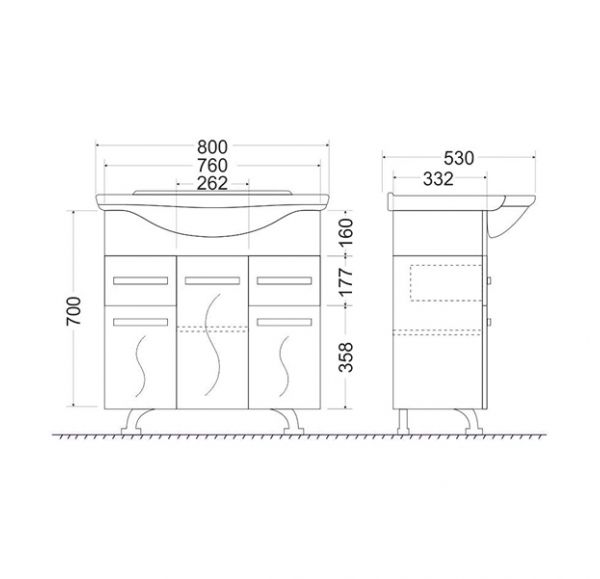 Тумба с раковиной Mirsant Сандра 80, 100 напольная с дв. и ящиками