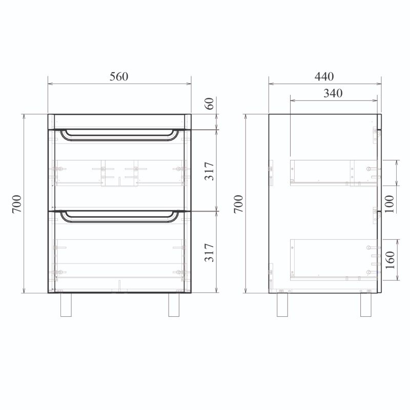 Модель напольная с двумя вместительными выдвижными ящиками СИТИ выпускается в двух размерах - 60, 80 см.