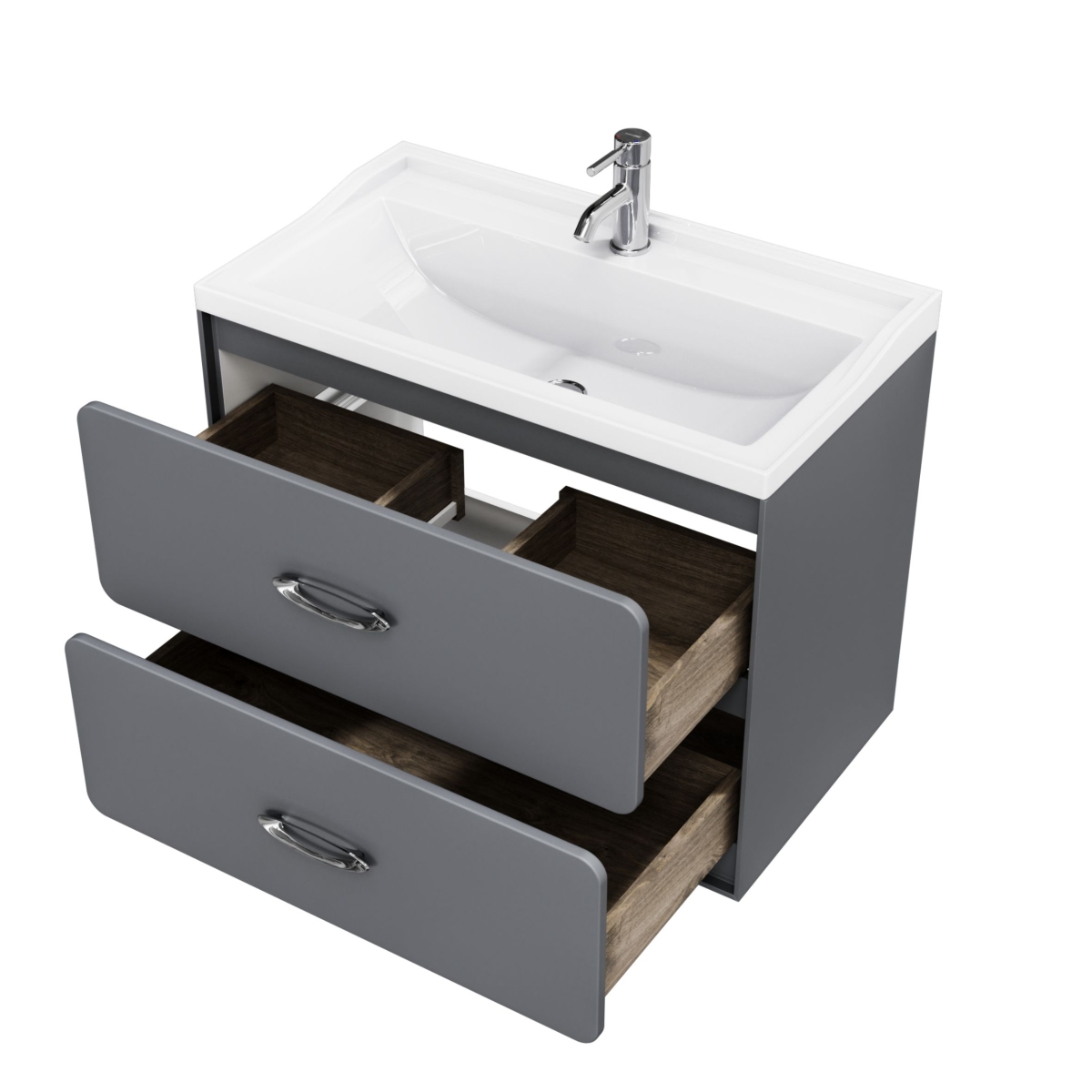 Тумба с раковиной Mirsant Viva 80, 100 подвесная, серая матовая