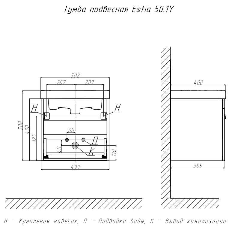 Тумба с раковиной Velvex Estea 50, 60, 80 подвесная